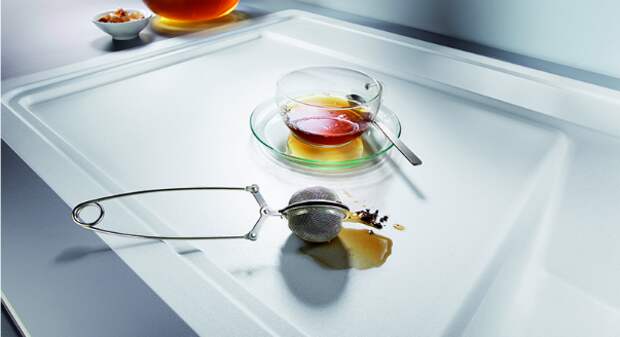 - Загрязнения не въедаются в поверхность, они легко убираются, главное вовремя протирать мойку от чая или кофе, чтобы избежать потемнения поверхности;
