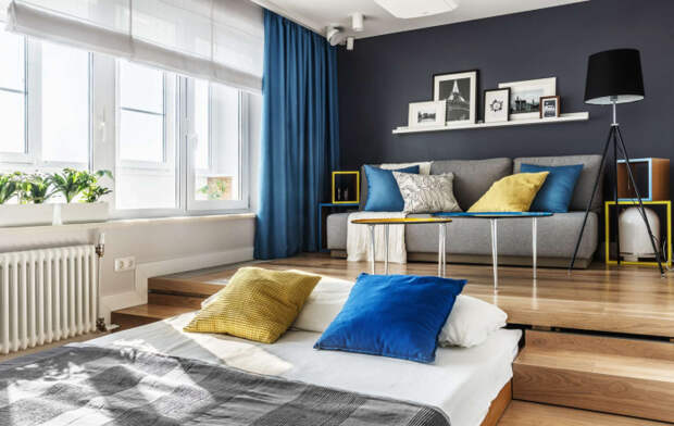 При помощи некоторых приемов зонирования из одной комнаты можно получить и зону отдыха, и зону сна.